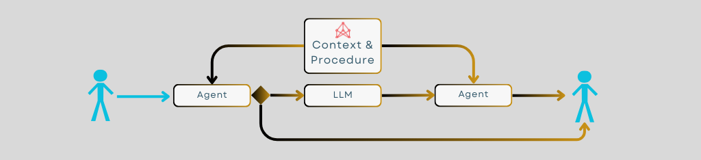 - An agent accepts a query and collects from one or more knowledge graphs the contextual and procedural concepts it needs to assess and respond to that query. It may respond directly at this stage.